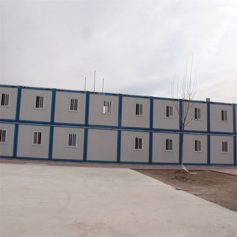 The dormitory is constructed using flat pack containers, which are pre-fabricated and designed to be flat-packed for easy transportation.