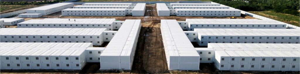 We mainly provide container office, dormitory, kitchen, dining room and public bathroom for this project. All houses are freely matched by different numbers of 20ft flat container houses. The dormitories are divided into single rooms, double rooms and multiple rooms, each equipped with corresponding circuits and air conditioning.